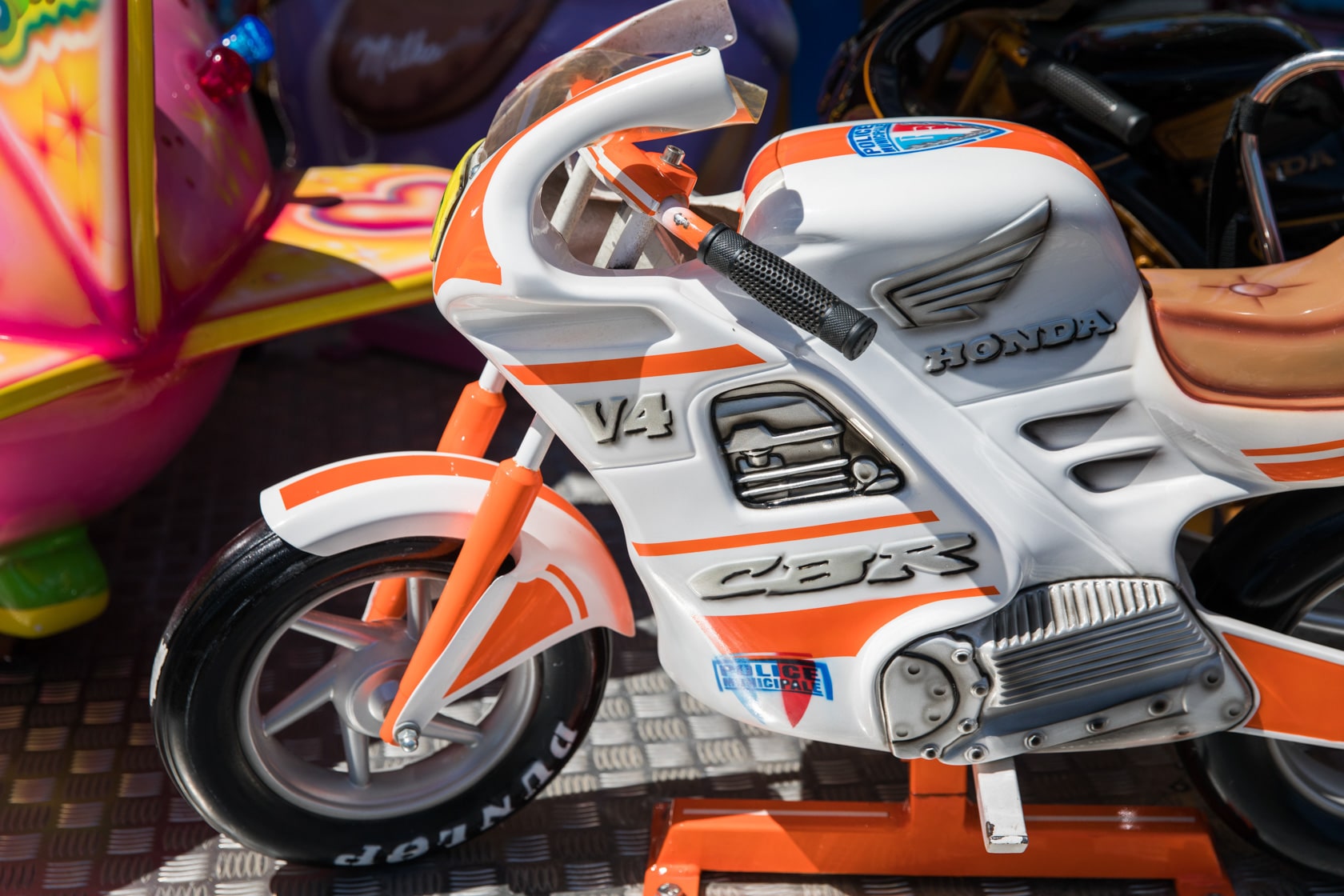 Wou mer dëst Spill kaf hunn, hu mer entscheed, eppes Neies ze probéieren. Amplaz nach ee Karussell ze kafen, hu mer eis Sammlung mat engem Kannerzichelchen ofgeronnt, deen am Joer 2019 vu „Jung Max Sarl“ gebaut gouf. En erfëllt sämtlech Sécherheetsstandards mat sengem Beweegungssensor a sengen RGB LEDen, déi d’Schinnen an d’Emgéigend nuets beliichten.