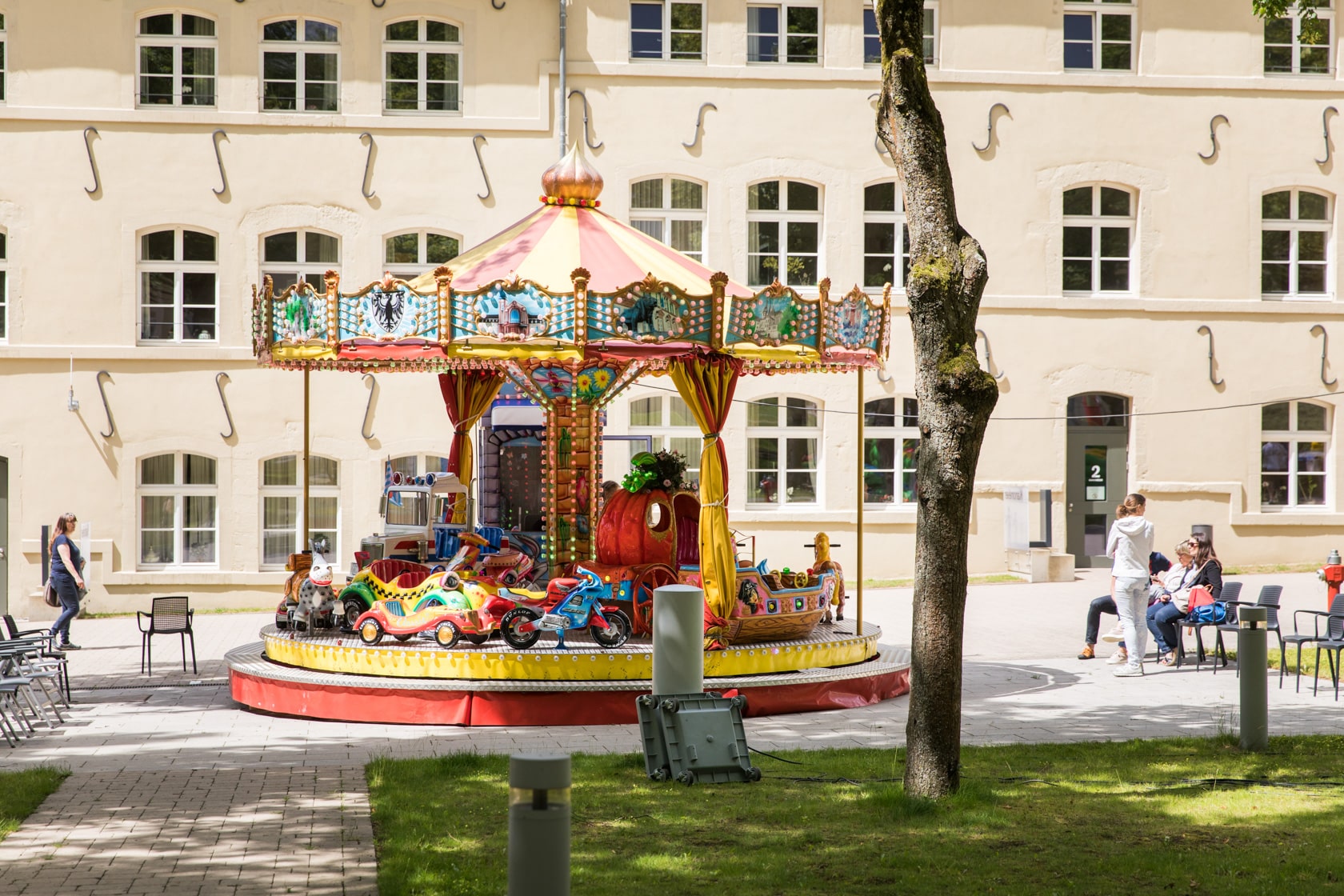 Dëst Kettekarussell huet säin Numm sengem mëttelalterlechen Ausgesinn ze verdanken, dat un eng al Buerg erënnert. Et ass 2013 vu „Park Rides Lamborghini“ gebaut ginn. Doduerch dass d’Sëtzer um ieweschten Deel vum Karussell festgemaach sinn, deen dréint, kréien d’Kanner d’Impressioun, si géife fléien. Wann et waarm dobaussen ass, profitéieren se ausserdem vun enger frëscher Brise.